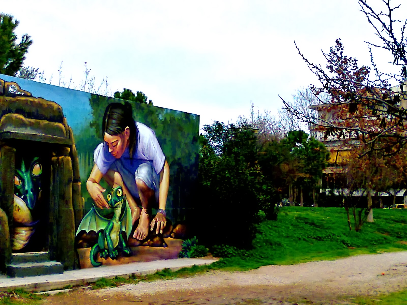 Μια ευχάριστη έκπληξη περίμενε όσους έκαναν τη βόλτα τους χτες στο Πάρκο της Ακαδημίας του Πλάτωνα, αφού τον μικρό τοίχο του δωματίου εργασίας του Δήμου που βρίσκεται μέσα στο αρχαιολογικό πάρκο, κοσμεί πλέον ένα υπέροχο γκράφιτι.