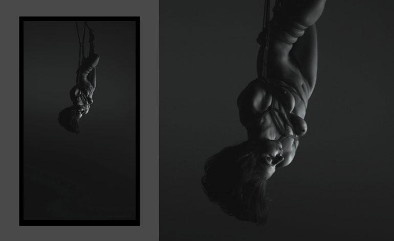 Το πρόσωπό της φέρει τον πόνο που συνδέεται με την ιαπωνική τέχνη του δεσίματος με σχοινί.